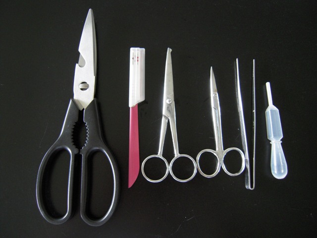 (解剖ばさみがなくても、キッチンばさみでも構いません。小型のはさみがあると、便利です。)