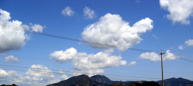 積雲(わた雲)は、厚く輪郭りんかくのはっきりした離ればなれの雲です。こぶのようにもり上がったかたまり状で、底面は平らなことが多い雲です。よく現れる高さは、中層(2~7km)~下層(2km以下)です。形が変わらなければ晴れが続きますが、発達すると積乱雲になります。