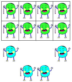 さらに気温が下がって部屋の数が8に減ると、12の水蒸気君のうちふくみきれなくなった4が凝結して水滴になる。