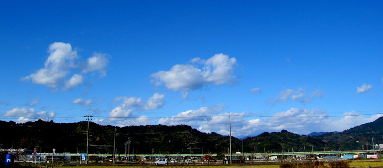 雲の水滴や氷の粒は、直径0.01mmくらいですが、これらの粒がくっついて大きくなり、上昇する空気によって支えきれずに落ちてきたものが雨や雪です。上の写真は北の空に見える雲です。