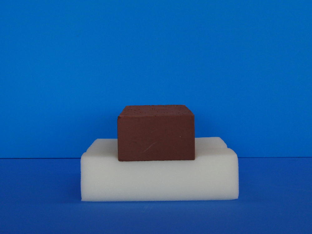 レンガをスポンジの上にいろいろな置き方で置いてみよう