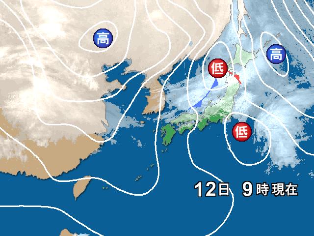 これは、2009年12月12日の日本付近の天気図です。 天気図には「高」「低」の記号があります。また、線もあります。これらは、何を表しているのでしょうか。 (天気図にカーソルをあわせると答えがわかります。)