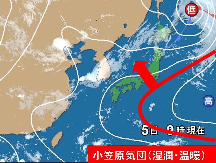 夏は、小笠原気団が発達して日本付近は覆われます。このため、湿度の高い暑い夏となります。