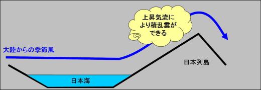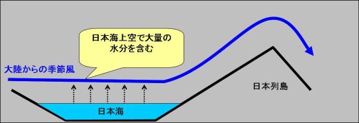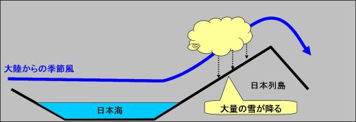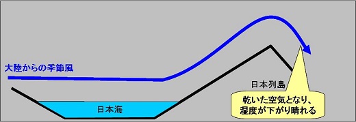 大陸からの季節風により、日本海側では大雪の降る日が、太平洋側では晴れた日が続くことがわかります。