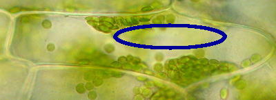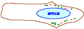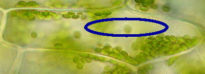 ・写真のように、細胞の中に青い線で囲った透明な袋があると仮定するとわかりやすいです。その外側を葉緑体が動いているように見えます。