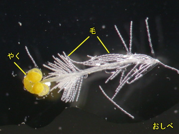 花から1本おしべを取り出してみたところ、たくさんの毛のようなものが生えていることがわかりました。 この毛を顕微鏡で拡大してみることにします。