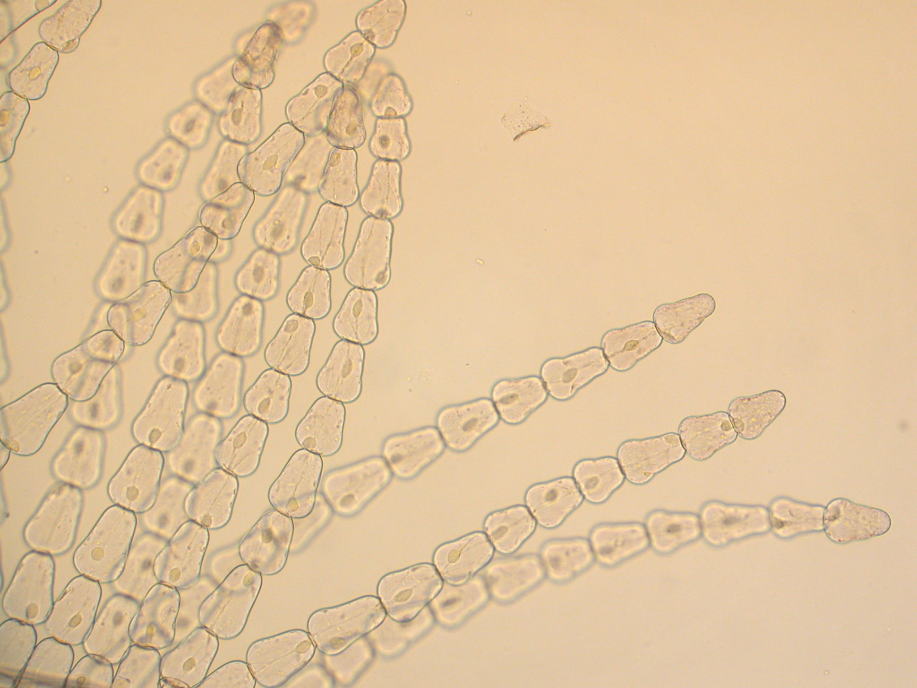 毛を拡大して観察すると、細胞が数珠のようにつながっているように見えます。