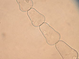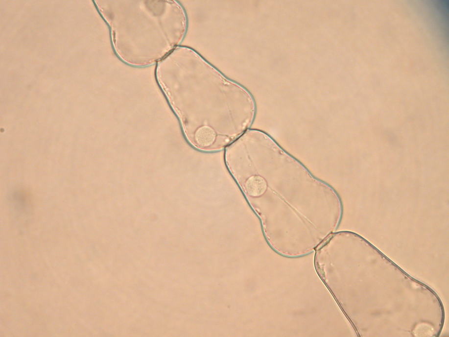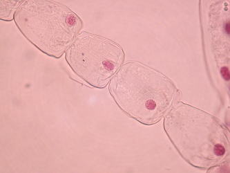 おしべの毛は細胞でできており、それぞれの細胞は酢酸オルセインで染色される核を1つ持ちます。