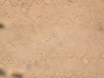 花弁を顕微鏡で観察すると、おもしろい形の細胞が観察できました。