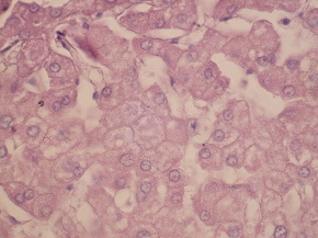 肝臓、腎臓、すい臓いずれも核が染色され、細胞があるようすがわかります。