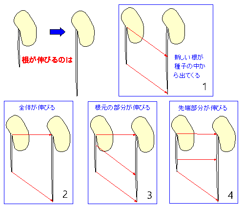 「根が成長する」といってもいったいどの部分が成長するのでしょうか? いろいろな考え方があると思いますが、左図のような4つを考えてみました。