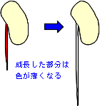 根に色を付けておけば、成長した部分は色が薄くなるはずです。