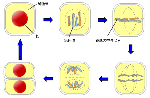 ここでは、植物の細胞分裂のようすを、模式図や写真を使って説明していきます。