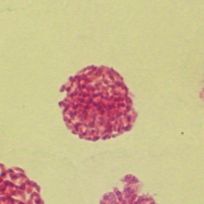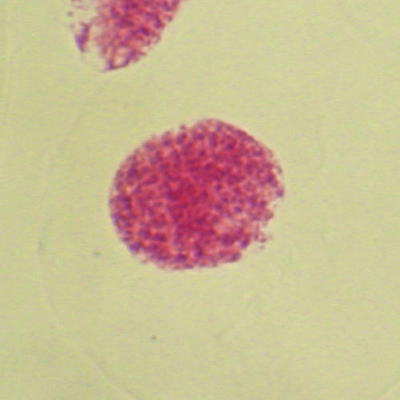 ・細胞分裂が始まる前は、核がはっきりした球形になっている。