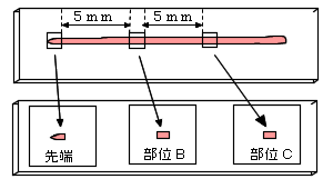 ・先端部と部位Bでは細胞の大きさがはっきりと違う。