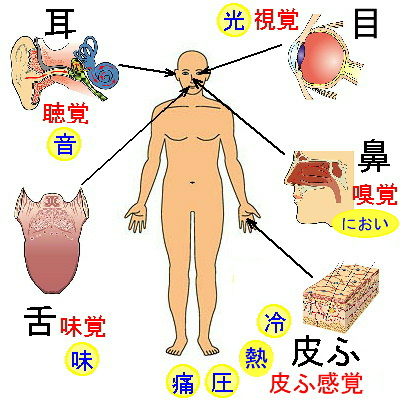 一方、痛み、圧力、熱さ、冷たさなどの感覚は、特定の器官でキャッチするというより、それぞれの刺激を受けとる装置(感覚点)が全身の皮ふに存在しているので、皮ふ感覚といいます。