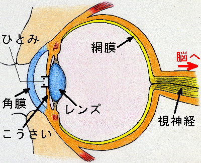 目は光を受けとる感覚器官です。ヒトの目について、そのしくみを見てみましょう。