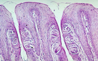 ・舌の表面にある味を感じる細胞が液体中の化学物質を受けとると、これが神経を通して脳へ伝えられ、味を感じます。