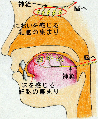 鼻と舌で感じるにおいと味は、ともに化学物質を刺激として受けとります。