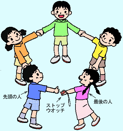 最後の人は、手をにぎられたらストップウオッチを止める。