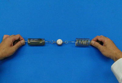下の図のようにおもりが動かないように両側から引っ張ってみよう
