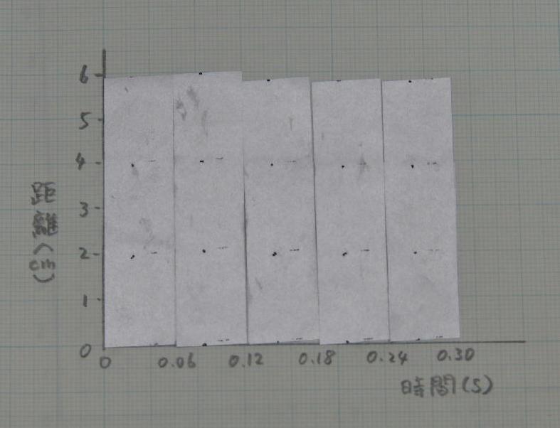 記録テープ を3打点ごとに切って、それを方眼紙にはり付けてみよう。
